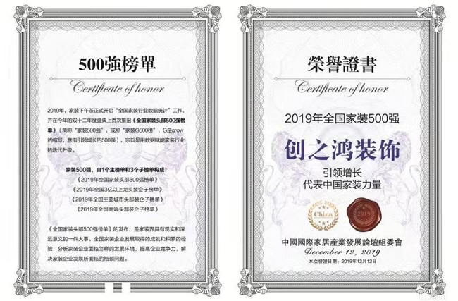 創(chuàng)之鴻裝飾:2019年全國家裝500強